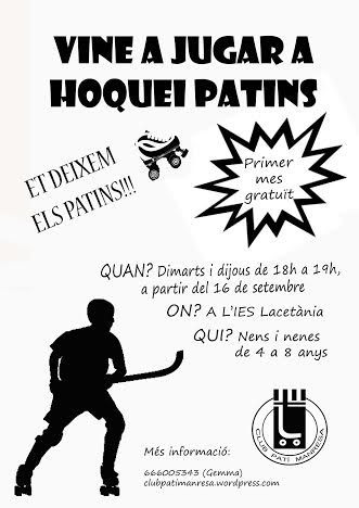 Si vols venir a provar el hoquei sobre patins, vine i et deixem els patins.