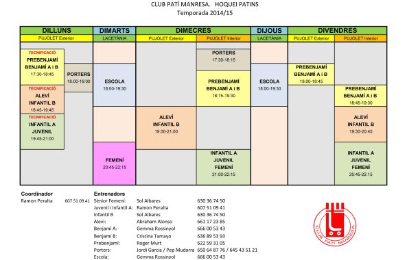 Aquí teniu els horaris de hoquei patíns: