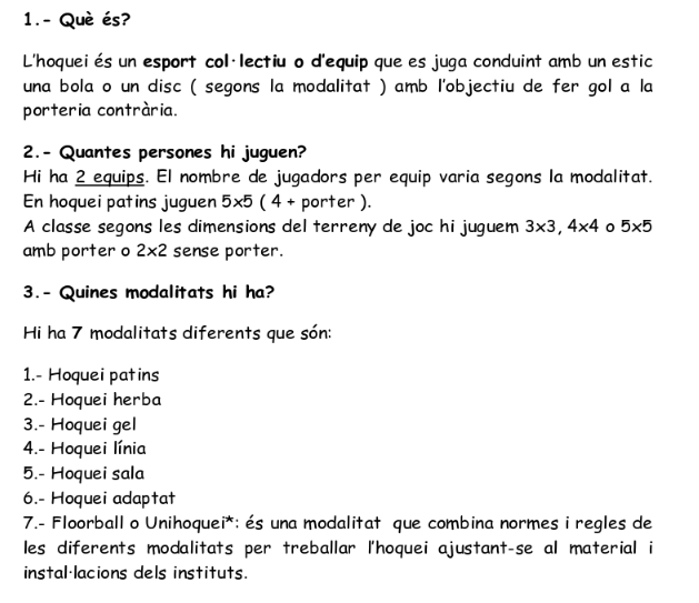 1b Aquí teniu informació sobre l'escola d'hoquei patins.